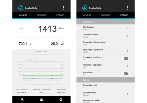 • 多参数测量, 可连接蓝牙pH与溶解氧仪至设备并显示测量值。