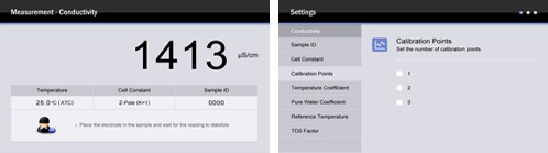 • 1至5点按键校准,自动识别电导标准液。
