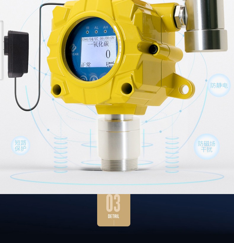 保时安K-G60(O2)工业用氧气气体报警器探测器是专为监测工业气氛中氧气浓度而设计的固定式气体检测仪。其广泛的量程范围(0~30%VOL)及可选量程,如0~30%VOL,配合0.1%VOL的高分辨率,满足不同工业场景的需求。支持多种传感器技术,包括电化学、催化燃烧、半导体、PID光离子和红外气体传感器,确保高精度和可靠性。用户可选择壁挂、管道、流通或泵吸等多种安装方式,以适应各种场合。传输方式灵活,包括标配的4-20mA和RS485通信,可选配433MHz无线传输功能,采用标准MODBUS RTU协议,适用于不同通信环境。设备具备快速响应、低线性误差、小零点漂移、短恢复时间等特点,可在-20~50℃的温度范围内稳定运行。符合防爆标志(Exd II T6 GB)、防护等级IP65的工业标准,同时配置两组继电器输出,为工业安全提供可靠监测与保护。