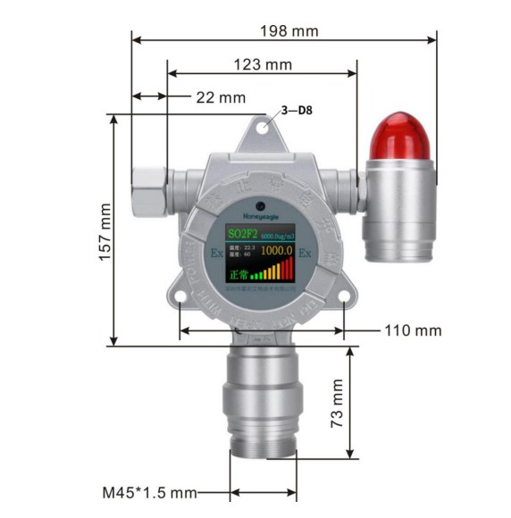 霍尼艾格 HNAG1000-HCL 固定式氯化氢检测仪 0-100PPM是一款出色的气体检测仪,专为监测氯化氢气体浓度和泄漏提供高精度和可靠性。它采用进口电化学传感器和微控制器技术,具备快速响应、高测量精度、出色的稳定性和重复性。该产品适用于危险环境,支持多种输出方式,包括4-20mA标准信号输出和继电器开关量输出,能够实现现场报警预警。此外,它还配备了多种电路保护功能,有效防止损坏。HNAG1000-HCL 还支持远程监控,可通过无线传输或有线连接上传数据,显示实时浓度、温度和湿度等信息。这款产品适用于各种领域,包括化工、环境监测、消防、医药科研等,并符合相关的国家标准和认证。