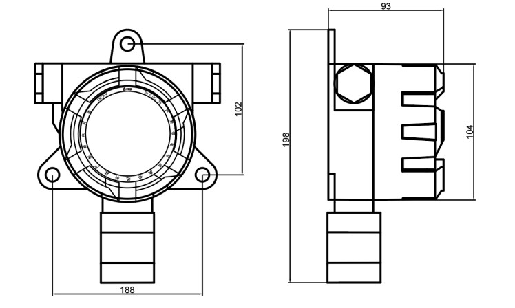 气体浓度检测仪是一款采用MCU芯片的低功耗模块化设计、具有智能化传感器检测  技术、整体隔爆(d)结构、固定安装方式的检测仪。标准配置为LCDTFT高清液晶显示、 三线制 4~20mA 模拟、RS485 数字和开关量信号输出,根据用户需求提供定制化产品, 还支持输出信号微调等功能,方便系统组网及维护。