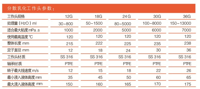 工作头规格