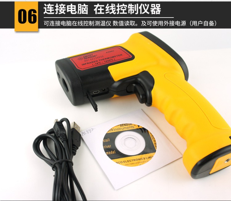 产品描述:测温范围200~2200℃,精确度±2%,分辨率0.1℃,重复性±1℃|±1%,物距比80:1,发射率0.10~1.00,响应时间500ms