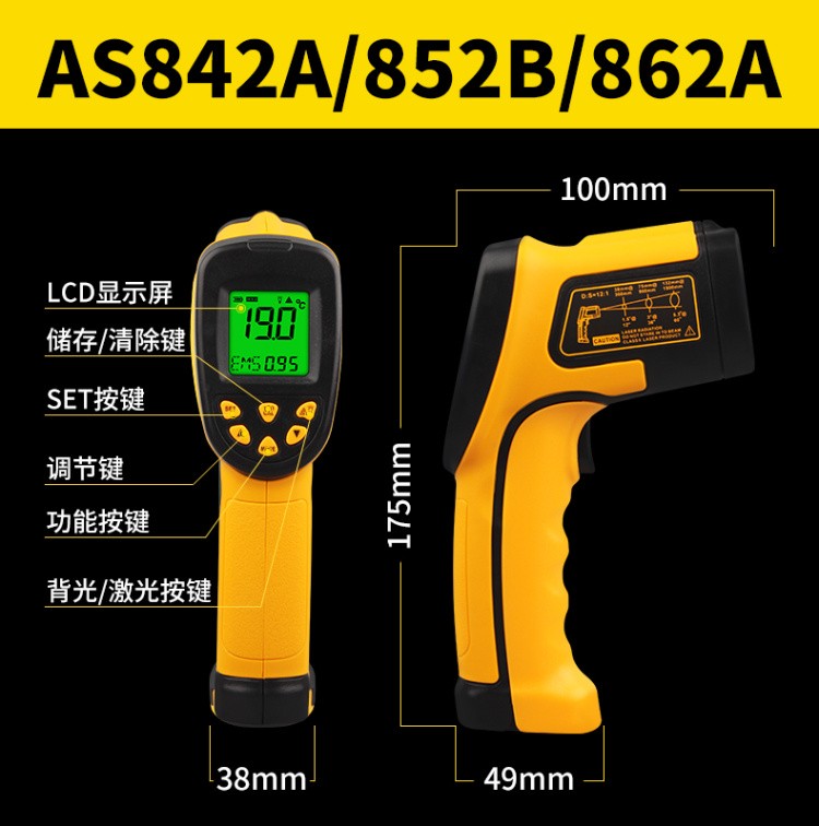 只要进行瞄准、按键,在一秒钟的时间内即可将当前的被测物体表面温度读出。对于高温、有毒或难以到达的物体,使用本产品即可安全地进行测量。