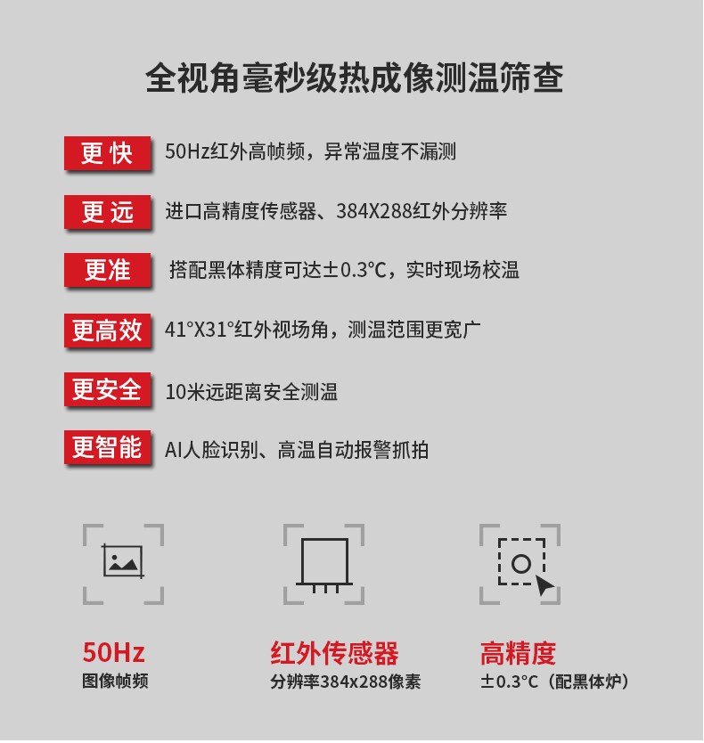 ≤±0.5°C(目标距离1.0~3米)目标温度32-42°C内