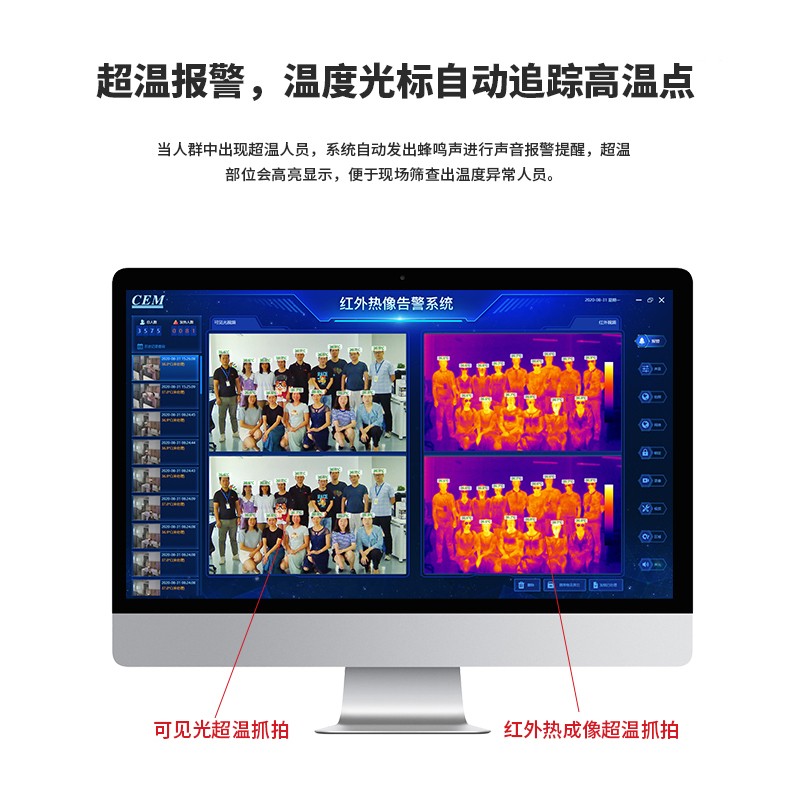 产品描述:华盛昌CEM AI-2031全自动红外热成像测温告警系统红外分辨率384*288,红外精度±0.3°C (黑体校正),红外镜头9mm,红外视场角41°x31°,AI-2031全自动红外热成像测温告警系统有超温报警,温度光标自动追踪高温点。