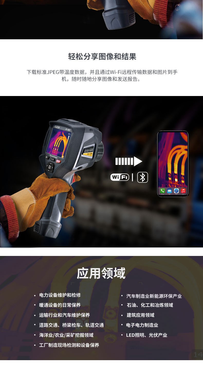华盛昌CEM DT-9875Y 表面温度快速筛查热像仪具备出色的性能特点,包括高分辨率的进口焦平面传感器、宽广的视场角、多种测温范围选项和精准的温度测量精度。其全视野高温追踪功能,支持外接显示器、录像和拍照功能,还有SD卡存储,为用户提供了出色的温度筛查和记录解决方案,适用于各种应用场景。
