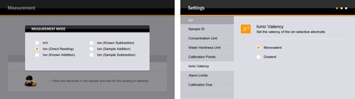 • 电极管理可储存3个离子电极斜率并调用各电极的校准数据。
