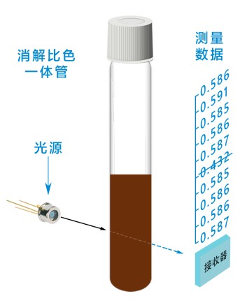 采用特定波长的冷光源对样品进行吸光度测量,仪器系统经特定算法,将检测结果直接转换成样品浓度值。