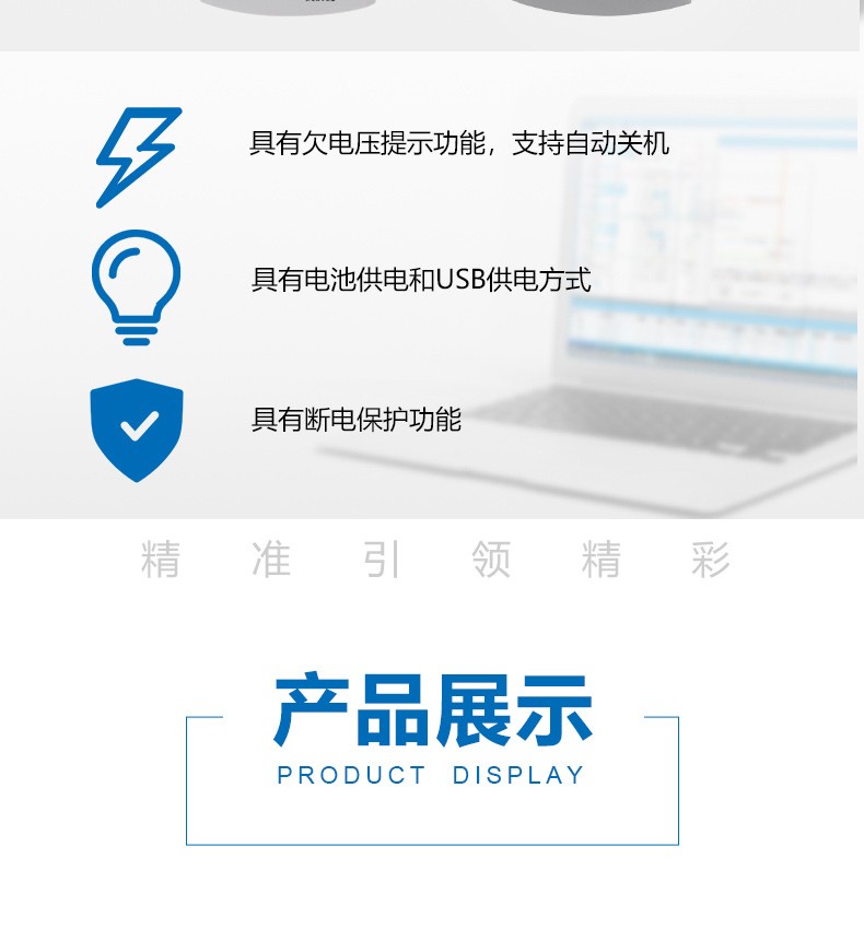 具有自动关机功能和断电保护功能,自动关机时间可设定,降低功耗,保证数据安全;