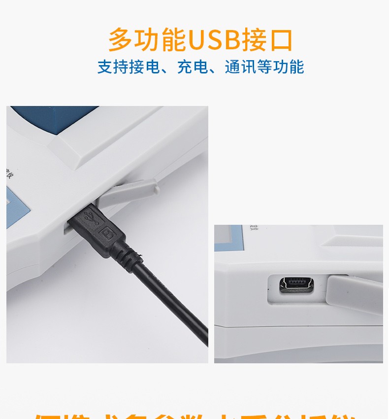 带有USB接口,支持与PC、打印机等连接;