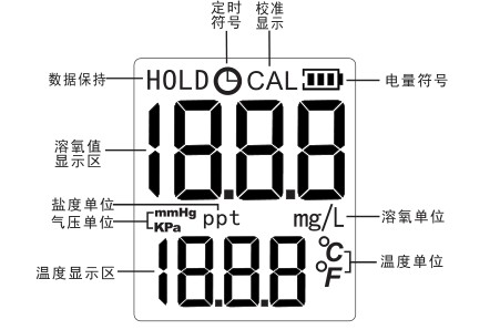本仪器采用两点校准,请先准备好--杯无氧水,和一杯饱和溶氧水(制备无氧水和饱和溶氧水方法,详见附录1)。如果被测水样含有一定盐度(如海水养殖场),测量时应进行盐度设置(盐度值需用盐度计来测),本仪器盐度设置范围(0.0~45%o) ;然后如果不是在相应海平面测量时,需要进行气压强设置(大气压强需要气压计来测)本仪器设置大气压强范围:(101. 3~79.9KPa或760~600mmHg)。