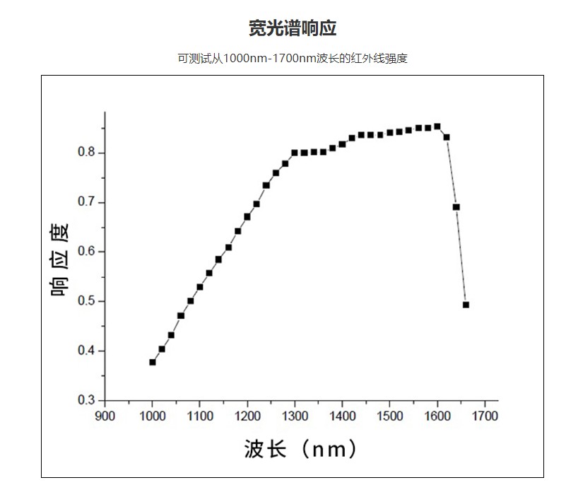 4.宽光谱响应,可测试从1000nm-1700nm波长的强度。
