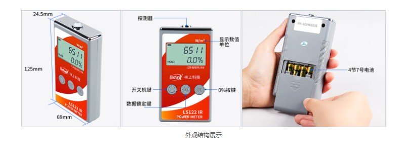 2.可用于红外线光源(太阳,红外灯等)的辐射强度测量(红外线功率密度)。