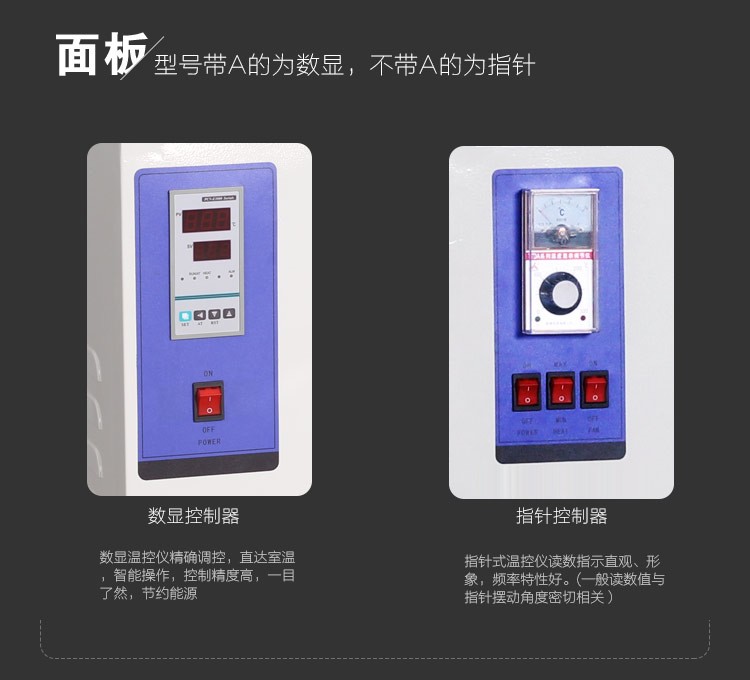 1.温控器分指针式、微电脑智能PID数字显示两 种;