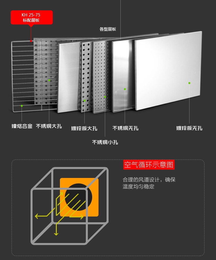 警告!易燃易爆易挥发物品严禁放入箱内加热干燥,对于高价值的物料进行加热,更好加装独立限温器,设定最高温度上限,双重保险确保物料不会因箱体电子元件失效而升温过高导致损坏。