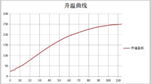 图1、升温曲线图:时间单位:分钟,温度单位:℃。