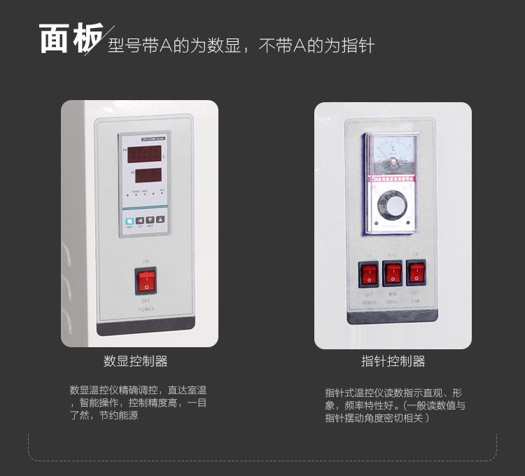 1.温控器分指针式、微电脑智能PID数字显示两 种;