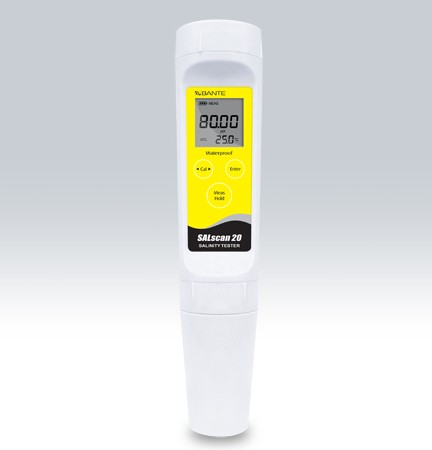 SALscan20笔式盐度计高浓度笔式盐度计,具有电导率测量功能,1至3点校准,自动温度补偿,内置系统菜单可自定义5项功能参数,仪表适用于测量高浓度液体(例如: 海水)的盐度及电导率值,测量精度:1% F.S。