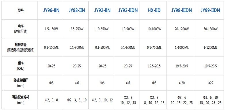 ●带有过载保护功能及变幅杆未浸入液体中会自动保护变幅杆不受损坏