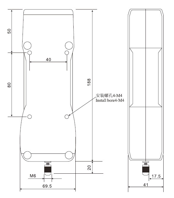 HG-50 数显推拉力计 的结构组成有:上限指示灯、下限指示灯、按键、显示窗、触头连接杆、通讯接口、电源适配器插孔、电平信号输出接口。具体如下图: