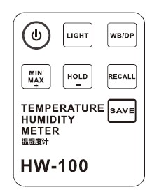 1、电源键:电源开关,按 电源 键 HW100 便携式温湿度计 进入测量界面。
