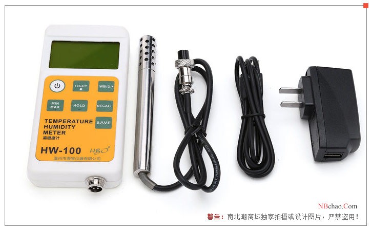海宝仪器HW100便携式温湿度计是一款集温度测试和湿度测试于一体的温湿度计,采用了高性能的传感器,包括电容式高分子薄膜湿度传感器和半导体式温度传感器,具有测量精度高、分辨率高、功能多等特点。 HW100 便携式温湿度计是数显式温湿度计,采用液晶显示屏,具有白色背光功能,并且能够自由切换摄氏度和华氏度测试单位。