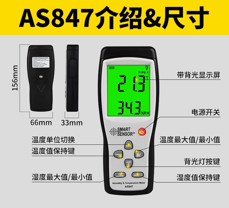 希玛 AS847 分体式温湿度计 温度-20℃~1000℃