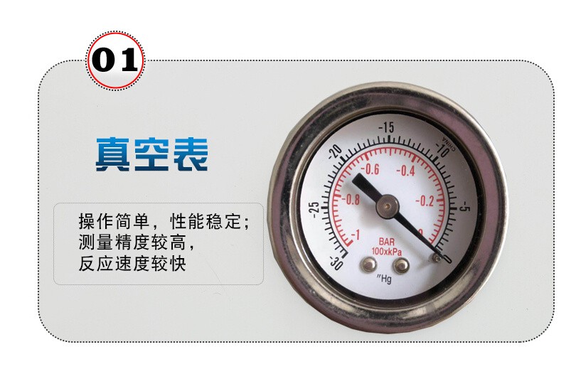 7.真空表监测实时真空度,最大真空度可达0.08Mpa,可正负压两用(正压型、调压型可选)。