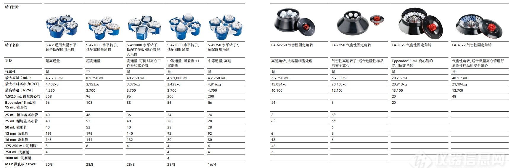 产品特性: >最大容量∶4×1L试剂瓶,368×1.5/2.0mL离心管,108×5.0mL离心管,108×15mL锥形离心管,52×50mL 锥形离心管,196×13mm圆底管,28×MTP微孔板 >最大相对离心力∶21,194×g(13,700 rpm) >温控范围-11℃至40℃ >转子在最高转速下,仍可以保持4°C >5.0mL离心管固定角转 >工作板转子可离心各种微孔板、深孔板、PCR板、细胞培养板、细胞培养瓶、IsoRack 离心管架和玻片 >自动转子识别和自动转子失衡检测,离心更安全 >气密性转子,由英国Porton Down的独立的第三方检验机构Health Protection Agency(简称HPA)进行测试并认证,符合IEC 1010-2-020 annex AA标准 >转子的使用寿命可高达100,000次(cycles) >转子和附件可高温高压灭菌(121℃,20分钟),保护操作人员安全 >Eppendorf QuickLock快速锁定转子/吊篮盖∶旋转1/4圈可快速打开或锁紧转子/吊篮 >At set rpm 定速计时功能,达到预定转速后开始计时 >实现多种规格耗材的离心,方便灵活操作 > 10档软加速和软刹车功能,防止样品重悬 >99个用户自定义程序;5个快捷程序按键,快速运行常用程序 >最高转速运行时噪音水平低<55 db(A) >两个开盖位置,全开94 cm方便转子更换,半开52cm方便样品取放 >FastTemp pro快速预冷编程功能∶可以在设定的日期和时间进行自动制冷,还可设置自动重复功能 >动态压缩机控制技术(DCC),降低振动,保护样品 >能耗低,最大功率 1650 W,待机能耗低于2 W 多功能转子