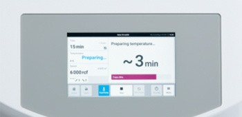 5910 Ri 离心机采用 7 寸大屏触控操作界面,实现了更加轻松快捷的离心操作控制。不仅可以通过“常用参数”功能在几秒内设置新的离心程序,更有多达99个预存程序可以直接在主屏幕上访问。