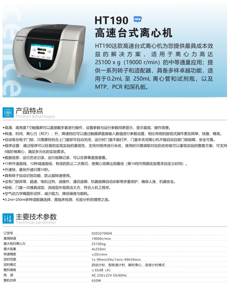 HT190这款高速台式离心机为您提供最*成本效益的解决方案,适用于离心力高达25100 x g(19000 r/min)的中等通量应用;提供一系列转子和适配器,具备多样卓*功能,适用于0.2mL 至 250mL 离心管和试剂瓶,以及 MTP、PCR 和深孔板。