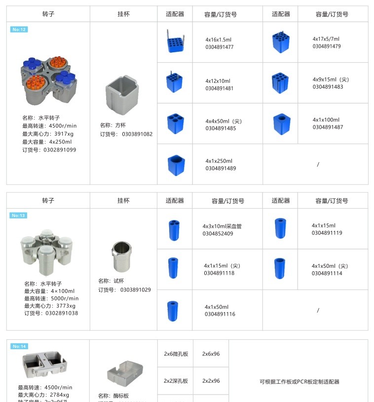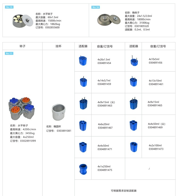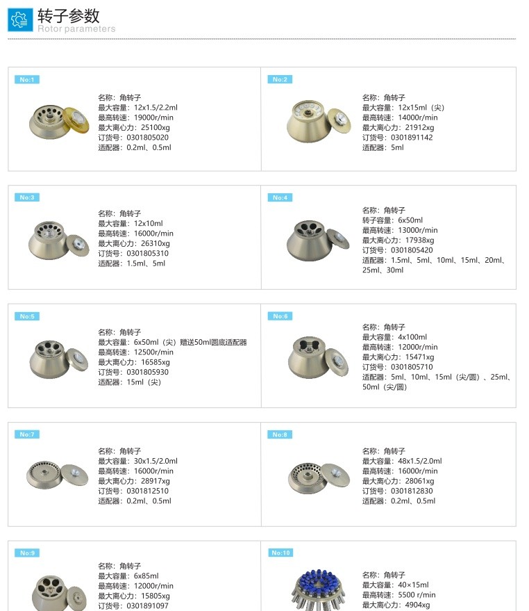 ◆12款角转子,4款水平转子,0.2~250ml所有试管、试瓶和工作板都可以离心;既能高速,又能大容量分离。