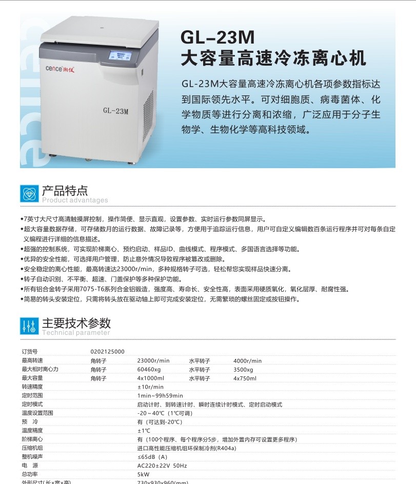 全部商品分类GL-23M大容量高速冷冻离心机各项参数指标达到国际领*水平。可对细胞质、病毒菌体、化学物质等进行分离和浓缩,广泛应用于分子生物学、生物化学等高科技领域。