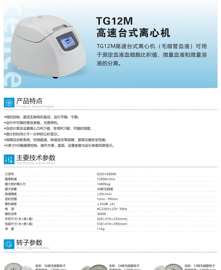 TG12M高速台式离心机(毛细管血液)可用于测定血液血细胞比积值,微量血液和微量溶液的分离。