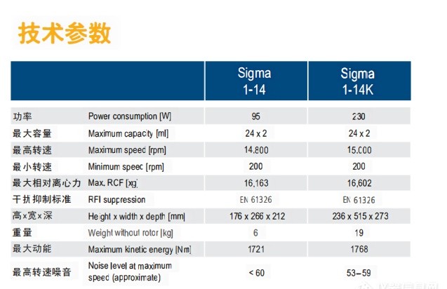 德国Sigma Laborzentrifugen公司是世界专业离心机生产厂家之一,只专注于研发、生产离心机产品,自1948至今,已经有近80年的离心机研发、生产历史,为用户提供多种离心机产品及种类非常丰富的配套角转子、水平转子及配件,可根据每一个客户的需求为其提供最佳的离心解决方案,除拥有常规紧凑小型离心机、高速或大容量离心机、冷冻或非冷冻型离心机外,还可提供加热型、惰性气体填充型、洁净间型、水冷型等多种特色产品,应用领域包括药物研究、生物技术、医疗检测、环境分析和石油化工等诸多领域。Sigma离心机以其可靠的性能与高标准的安全性而闻名遐迩。