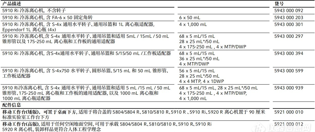 5910 Ri台式高速多功能冷冻离心机: 5910 Ri 离心机采用 7 寸大屏触控操作界面,实现了更加轻松快捷的离心操作控制。 “常用参数"功能在几秒内即可设置新的离心程序,更有多达 99 个预存程序可以直接在主屏幕访问。 新品 5910 Ri 增加了三级权限管理、自定义任务提醒及运行程序的回顾、文档转存功能,着力支持操作合规。