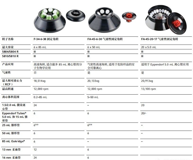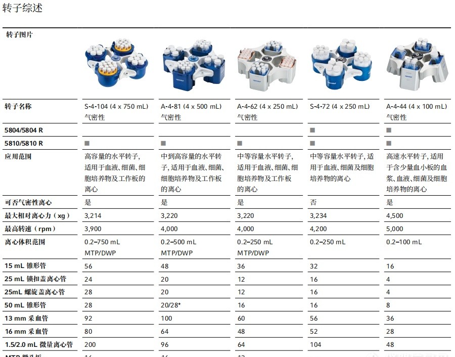 5804/5804 R 和 5810/5810 R 离心机的常用转子