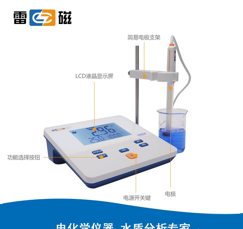 ● 标配复合pH电极、电极支架、防尘罩和校准缓冲粉剂