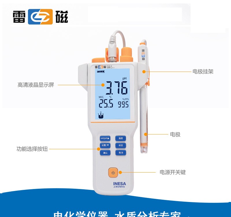 ● 标配复合pH电极、电极挂架、硅胶保护套、腕带、校准缓冲粉剂