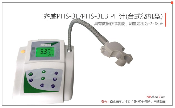 齐威PHS-3EPH计(台式微机型)是测量范围比较大的PH计,测量范围为-2~18pH,PHS-3E PH计采用由特殊敏感薄制成的玻璃电极,灵敏度高,可进行数据存储和提取,能够自动进行温度补偿,操作方便简单,测量数据稳定。