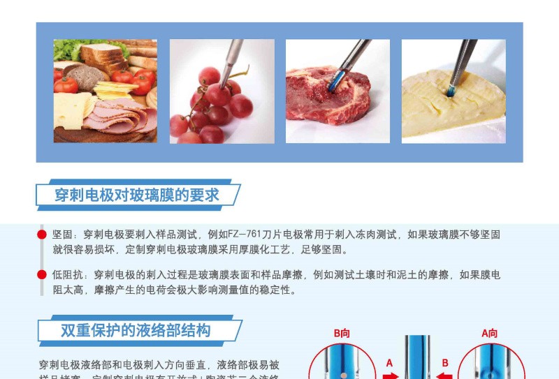 方舟 FZ-251 玻璃PH电极 奶酪、水果、蔬菜、寿司等软性样品测试