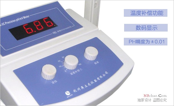 奥立龙PHS-3C酸度计是一种带有牢固电极支架的台式酸度计,比较适用于实验室进行溶液酸碱度测试,数码显示测试的数值,测量的精度值为0.01pH。PHS-3C酸度计是通过手动旋钮进行温度补偿的,温度范围为0~60℃,并且可调节斜率。