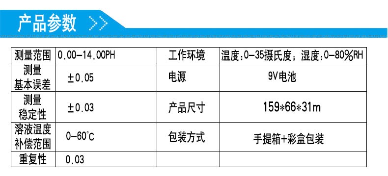 产品描述:PH测量范围0.00~14.00,稳定性(零点漂移)±0.03,测量基本误差±0.05,溶液温度补偿范围0~60℃,重复性5~60℃