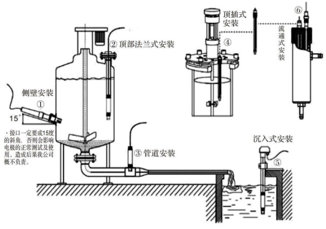 1、PH计塑壳电极安装应使用电极安装支架或流通杯,不可将塑壳电极直接放在水中。