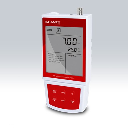 Bante220经济型便携式pH计经济型便携式pH计,2点按键校准,自动温度补偿,仪表适用于户外测量样品的pH/mV值,测量精度:0.01pH。