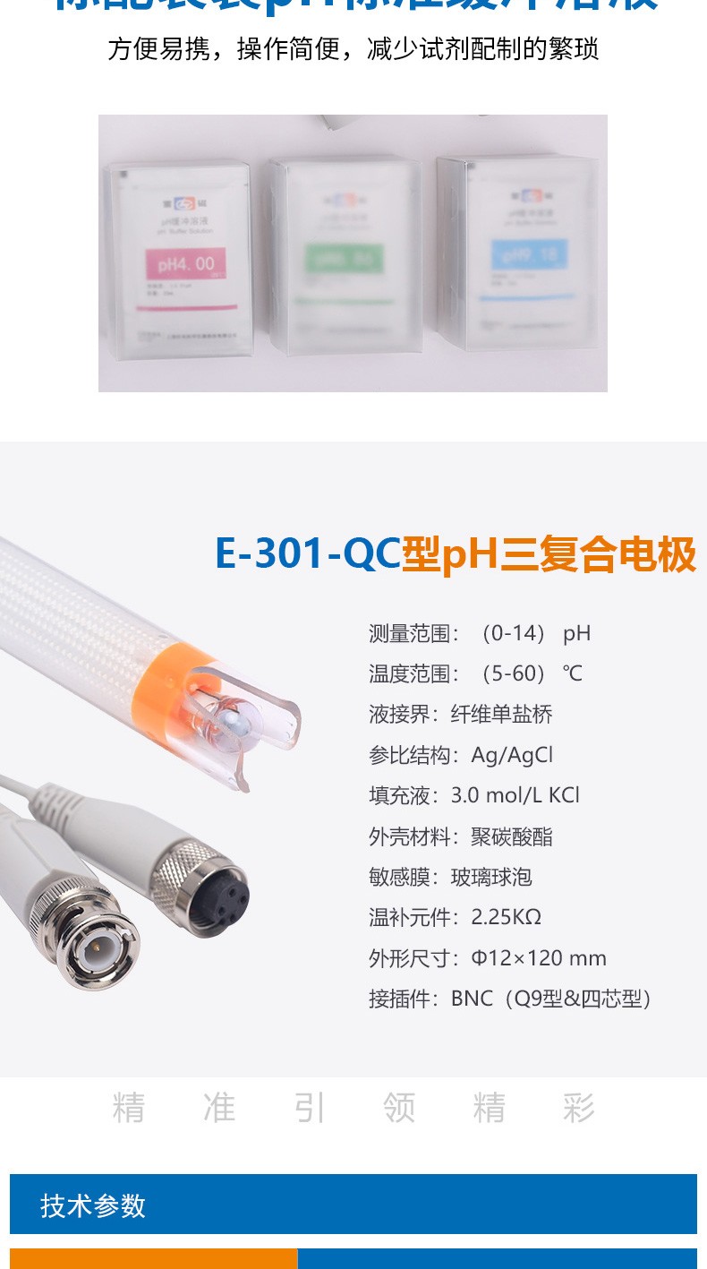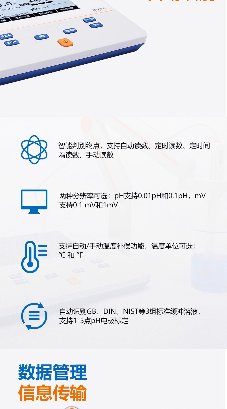 5、实现自动校准、自动温度补偿、自动识别5种缓冲溶液,且可以1-3点校准。