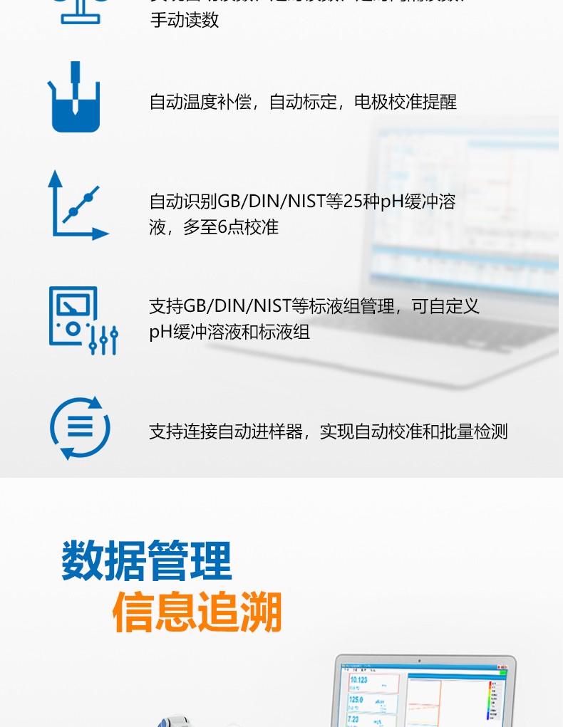 雷磁PHSJ-6L PH计是一种实验室专用智能型酸碱度检测仪,通过智能化操作系统实现了电极、用户、安全、校准、界面多用管理功能,并且具备的超强数据管理功能给用户在数据管理方面,包括查阅、统计、存贮、输出、输入等操作带来更大的便利性。PHSJ-6L PH计的测量分辨率为0.001pH,测量的范围为-2pH~20pH,支持摄氏度和华氏度两种温度显示方式。