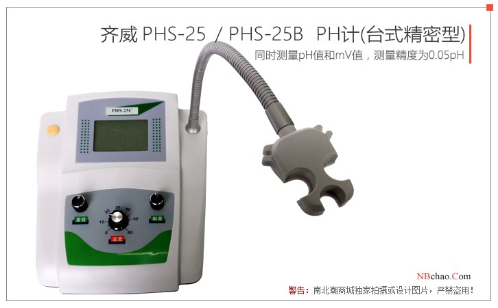 齐威PHS-25(台式精密型)PH计的测量精度为±0.05pH。可同时测量pH值和mV值,采用白色背光。其中可充电的是在pH计内部可装蓄电池,既可以使用电源线也可以拔掉电源线直接使用畜电池支持PH计的工作,操作方便,蓄电池充一次电可使用10~15小时。