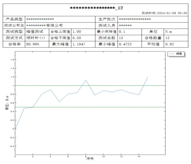 • 试验结果有多种坐标曲线显示:实时扭矩值-时间、峰值扭矩值-次数、第一峰值-次数